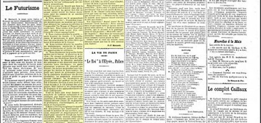 Translated from French: Le Figaro, Paris, February 20, 1909 (Italian version here) This English-language translation COPYRIGHT ©1973 Thames and Hudson Ltd, London. All rights reserved. … Continue reading The Founding and Manifesto of Futurism